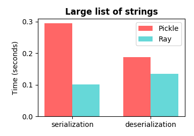 Without NumPy arrays: When using regular Python objects, for which we cannot take advantage of shared memory, the results are comparable to pickle.