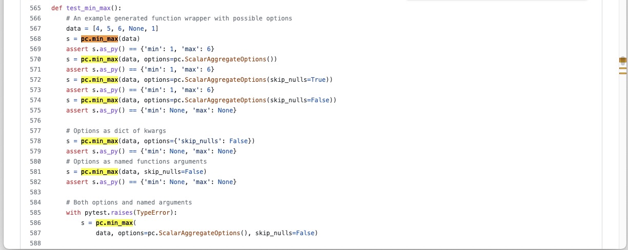 <pyarrow.StructScalar: [('min', 1), ('max', 6)]>